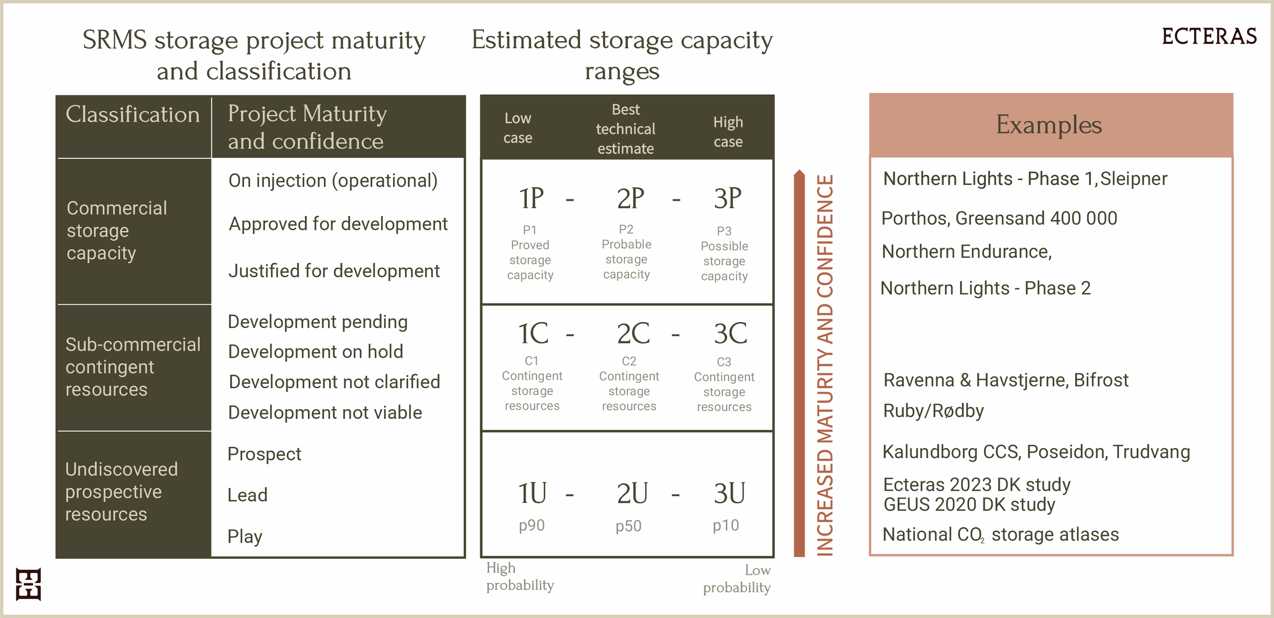 SRMS classification and real CO₂ storage projects as examples based on independent Ecteras studies and insights.