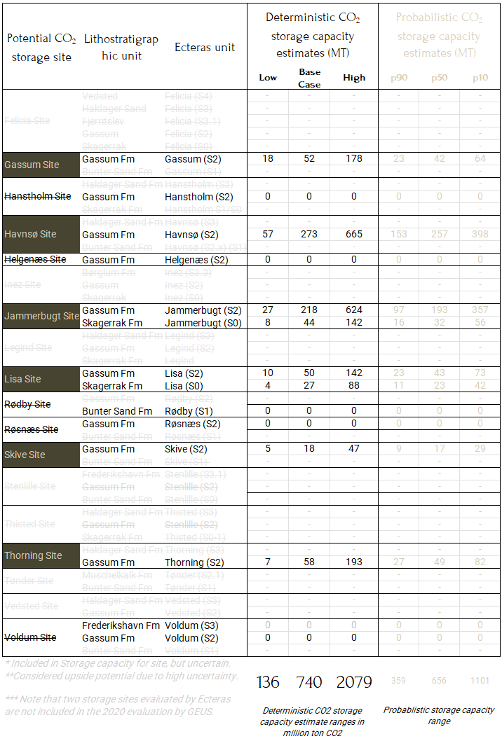 These storage capacity ranges with selected sites that are assumed developed in the future by Ecteras have been quoted in the article in Politiken.